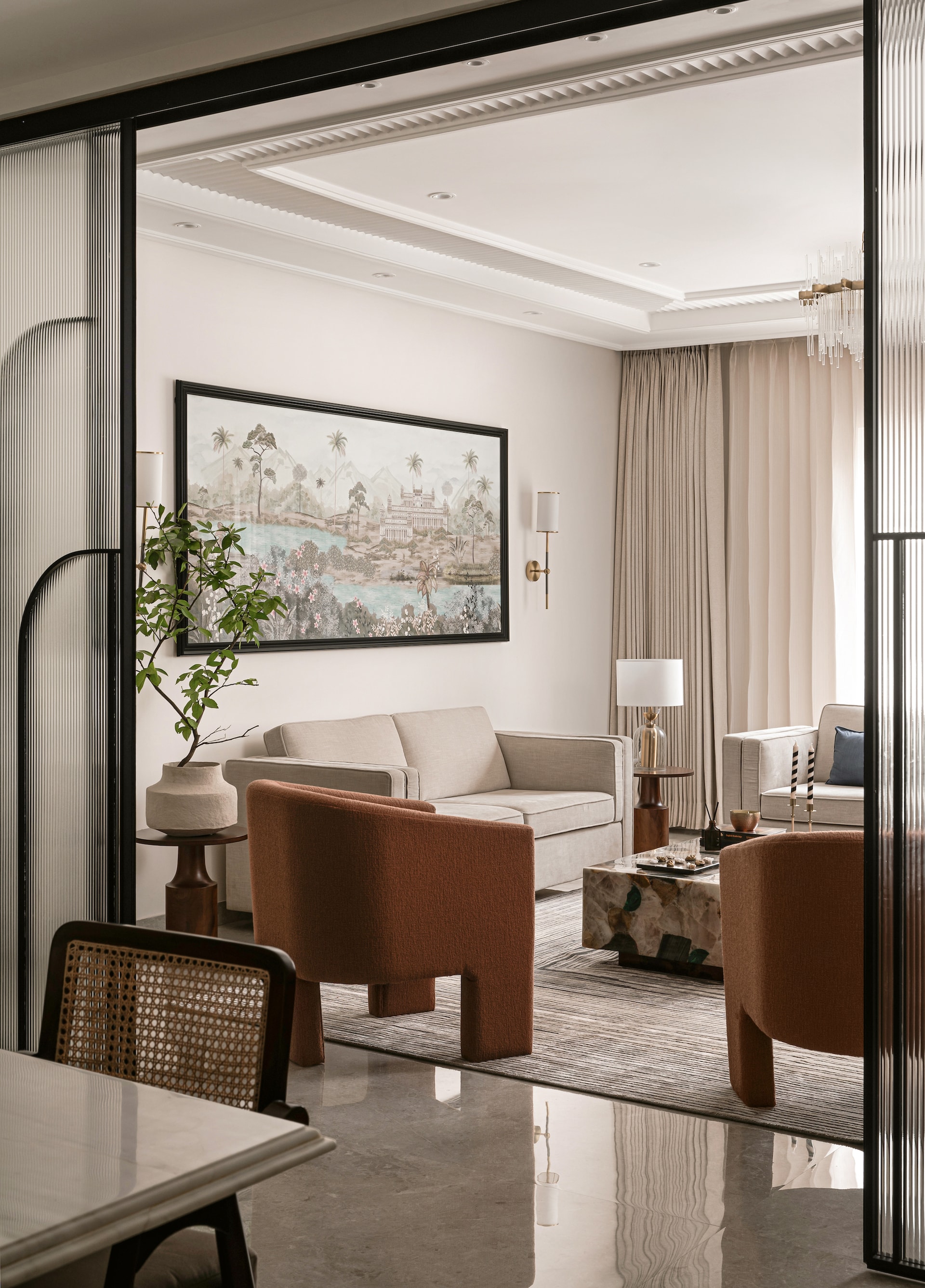 Eschewing invasive renovations, the design focused on creative space planning and curated furnishings to achieve a seamless facelift. Channeling the softer side of Mediterranean design, a neutral colour palette set the foundation, with layers of texture introducing subtle drama throughout the interiors. The result is a sophisticated yet durable home designed for comfortable living, with every element carefully chosen to withstand the test of time.