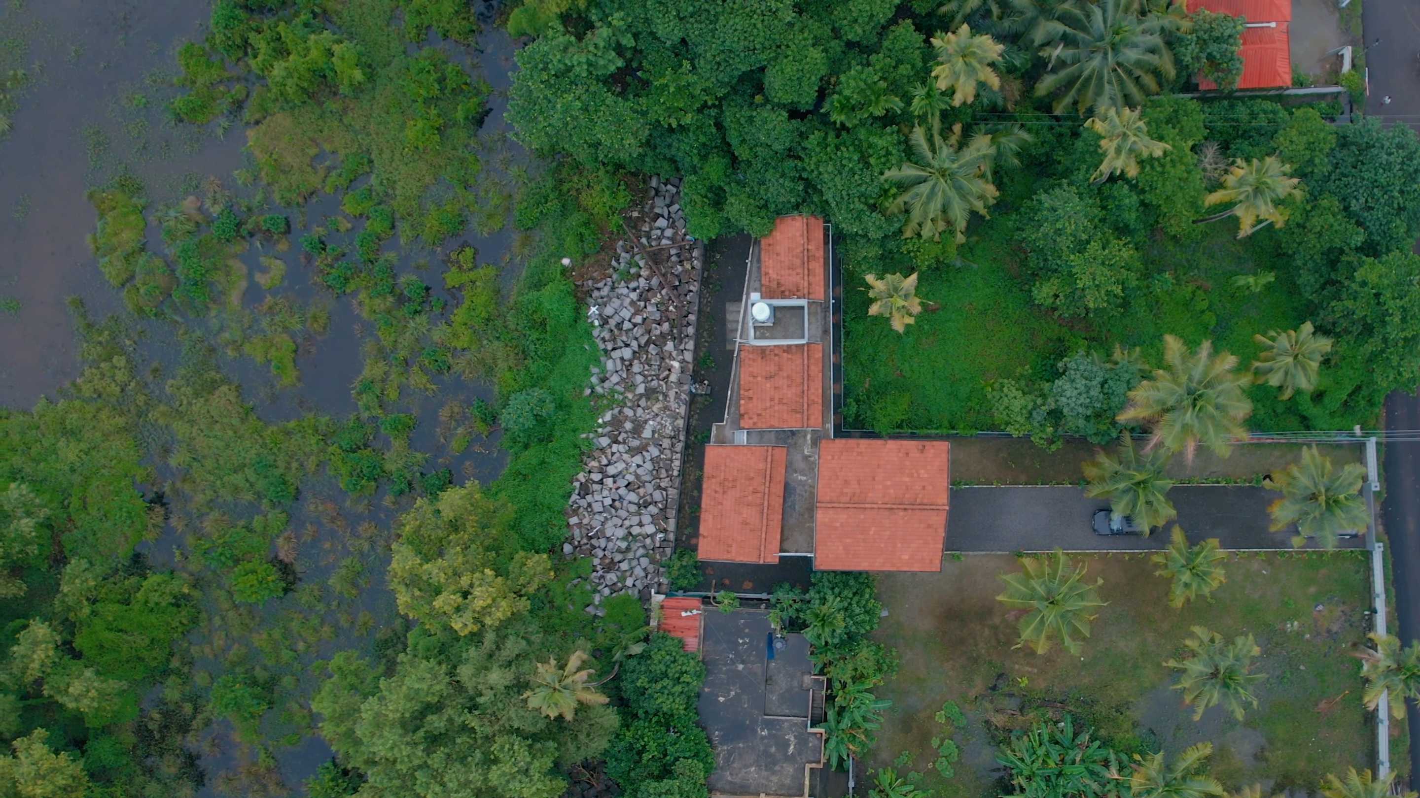 The heart of the home is the public zone, featuring an open kitchen that flows effortlessly into a double-height living room. This dramatic space is crowned by a Mangalore-tiled roof, with a mezzanine level that not only enhances spatial interplay but also serves as an intimate retreat or additional sleeping area. Adjacent to this, a covered balcony offers an idyllic setting for dining, complete with provisions for a barbecue grill and breathtaking sunset views.
