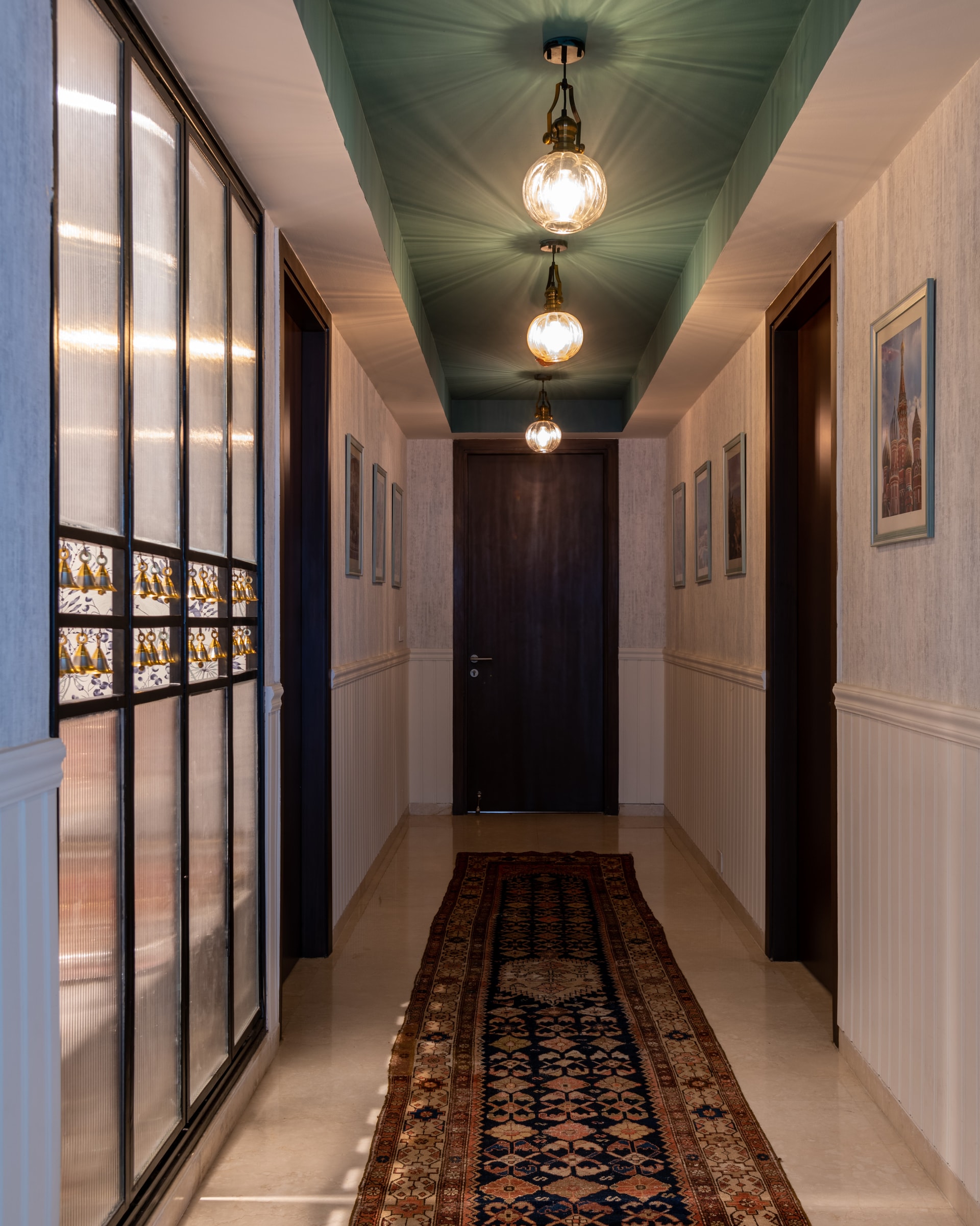 Adding a dynamic layer to the overall design are the beautiful rugs from Siva Delhi, which offer an opportunity to introduce vibrant pops of color into the spaces. The diverse prints and patterns of these carpets eloquently tell the story of the house in a single glance.