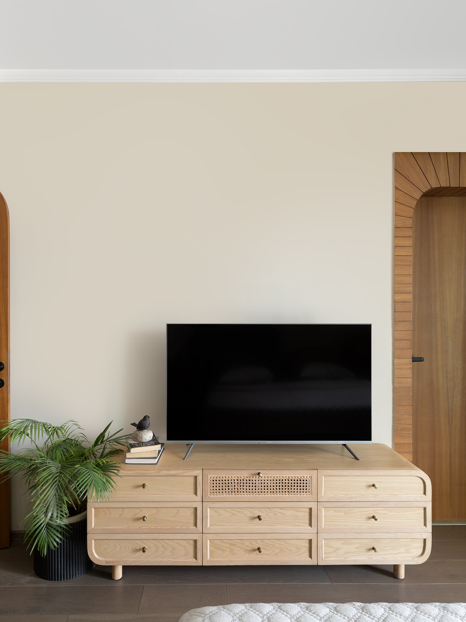 The design ethos is rooted in balance—where aesthetic allure meets practical utility. Upholstery fabrics were chosen for their durability and easy maintenance, catering to the needs of a young family. Solid wood and cane accents, alongside high-performance materials, highlight Beyond Dreams’ dedication to creating enduring designs that marry style with function.