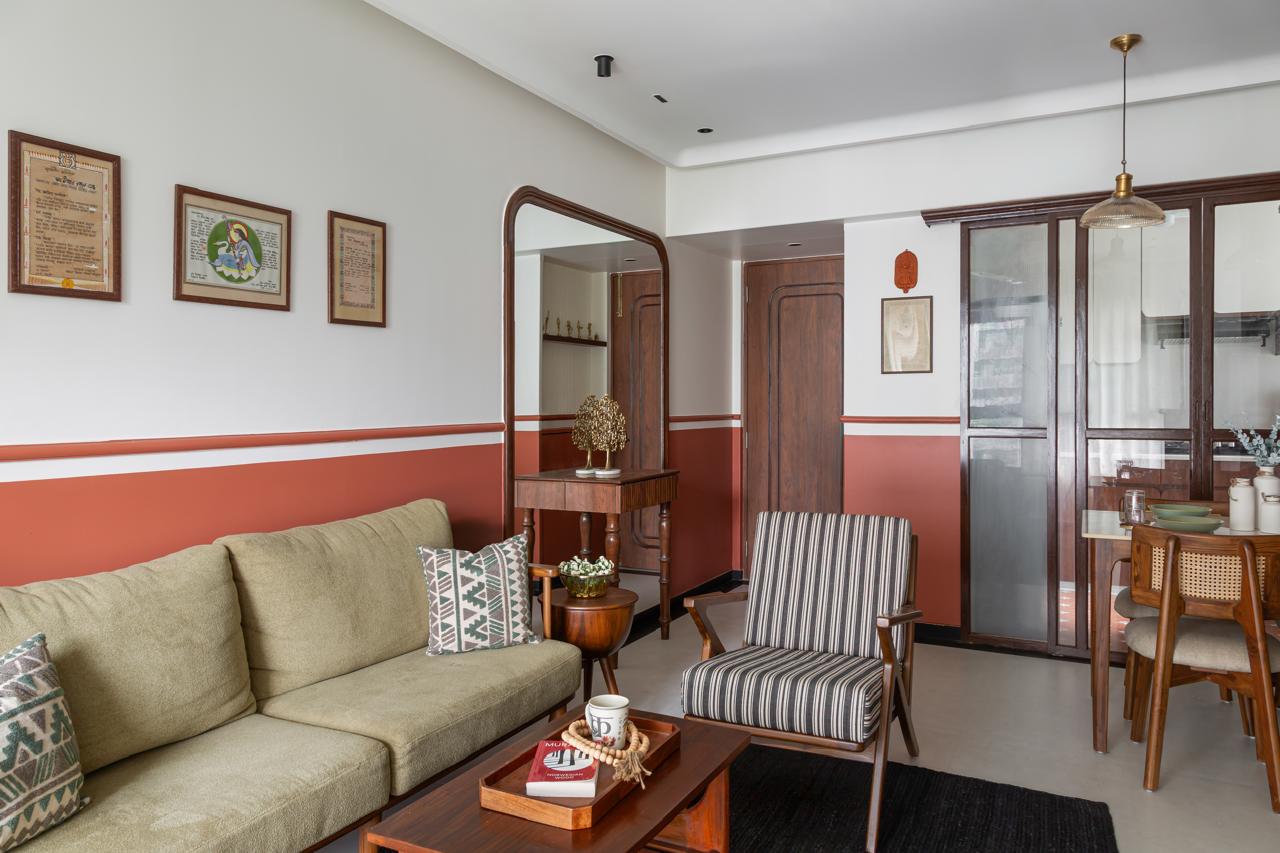 From the outset, the design intent was clear, to create a home that radiates warmth while resonating with the family’s cultural heritage. The architects, Ar. Disha Nayar and Ar. Umal Patil, embraced this vision with a restrained yet soulful aesthetic. Every inch of Ulka speaks of thoughtful curation: the presence of athungi tiles, classic wooden mouldings, and brass accents bring depth and authenticity to a modern layout. The home celebrates nostalgia without losing touch with the now, bridging old-world charm and present-day simplicity.
