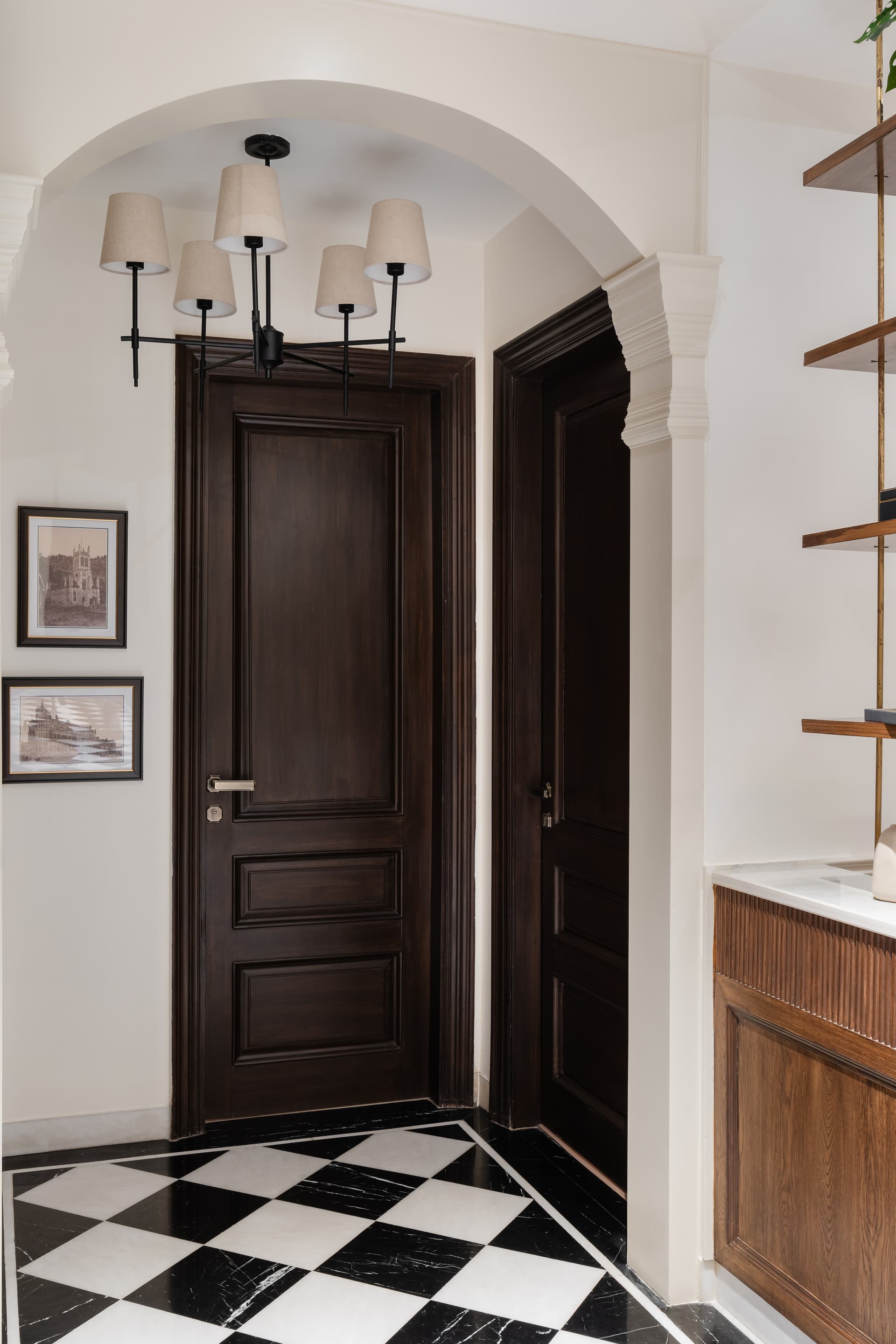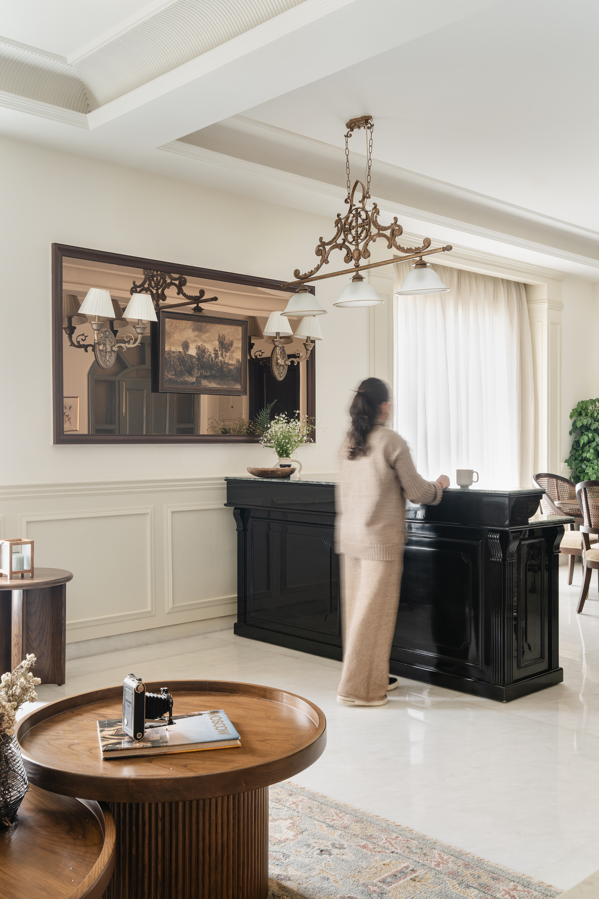 Ascending to the first floor, one enters a realm of Georgian elegance, where the aesthetic continuity of European influences is maintained yet distinctly expressed. The floor is characterised by its immaculate black and white polished floors, reflecting light with a mirror-like finish and adding a sense of drama and sophistication.