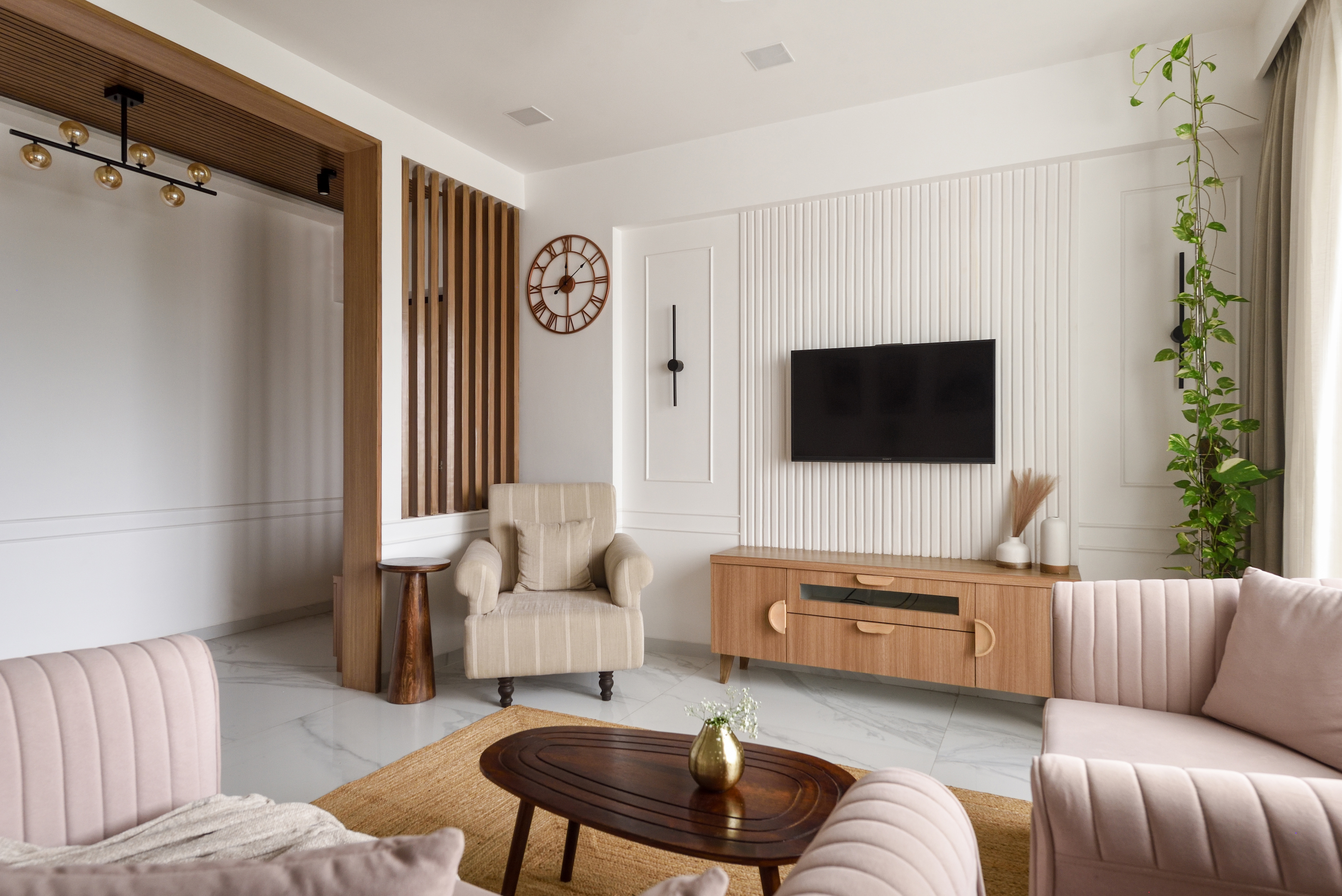 In the lush, green landscape of Palghar West, Maharashtra, a unique design narrative unfolds within the confines of a 930 sq. ft. apartment, deftly transformed by the visionaries at D+U Architects. Titled “Apartment on the Fourth,” this project exemplifies the seamless fusion of Japandi and Scandinavian design philosophies—a harmonious blend that marries minimalist elegance with inviting warmth. The apartment, designed for a discerning couple and their globetrotting daughter, offers more than just a living space; it provides a tranquil retreat from the frenetic pace of daily life.