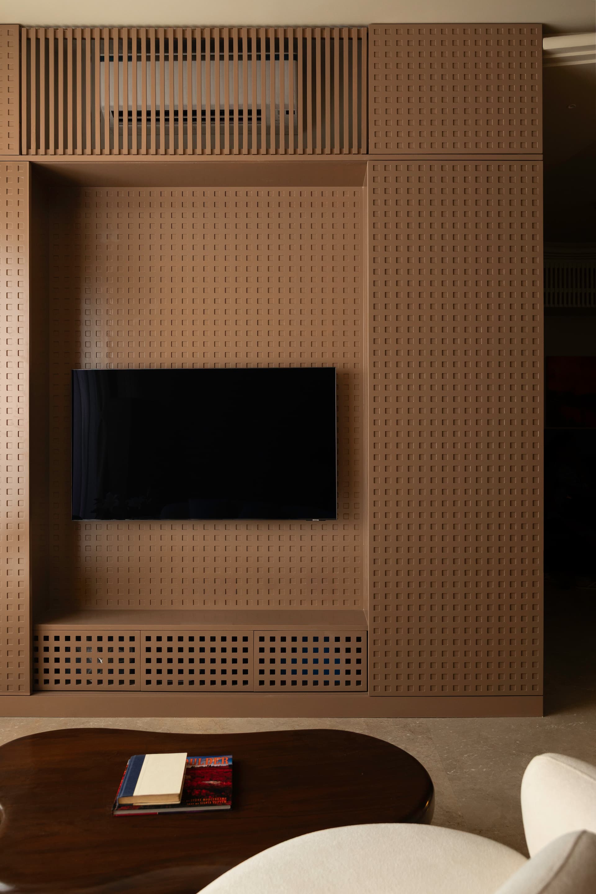 The signature of Aria lies in its softened architectural language. Studio Homzstead intentionally responded to the rigidity of typical urban apartments by introducing curves and tactile elements that create a sense of gentle motion. From ceiling profiles to furniture forms, each detail reinforces continuity. Materials and colours have been chosen for their ability to evoke depth without visual noise, creating an environment that feels grounded and harmonious.