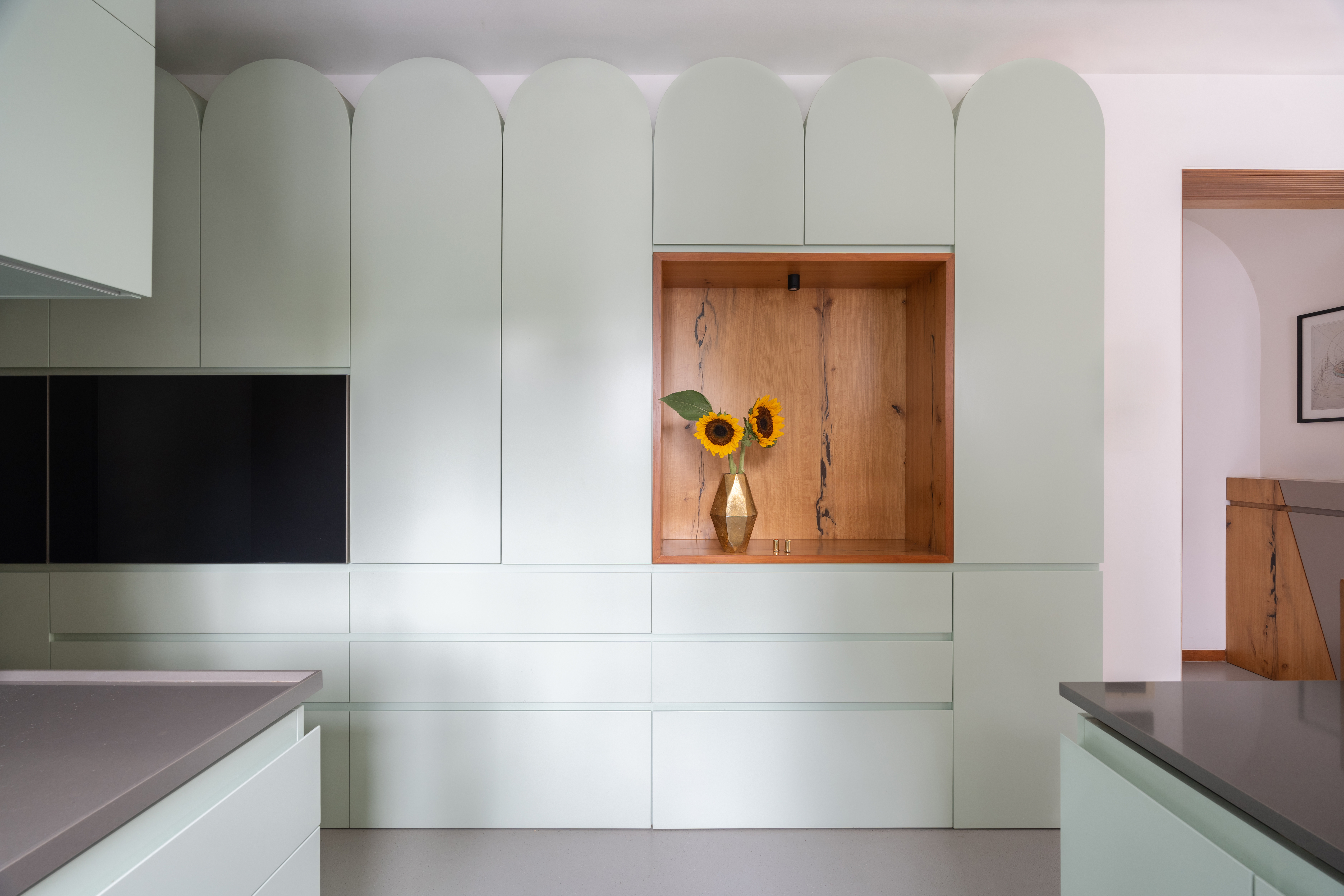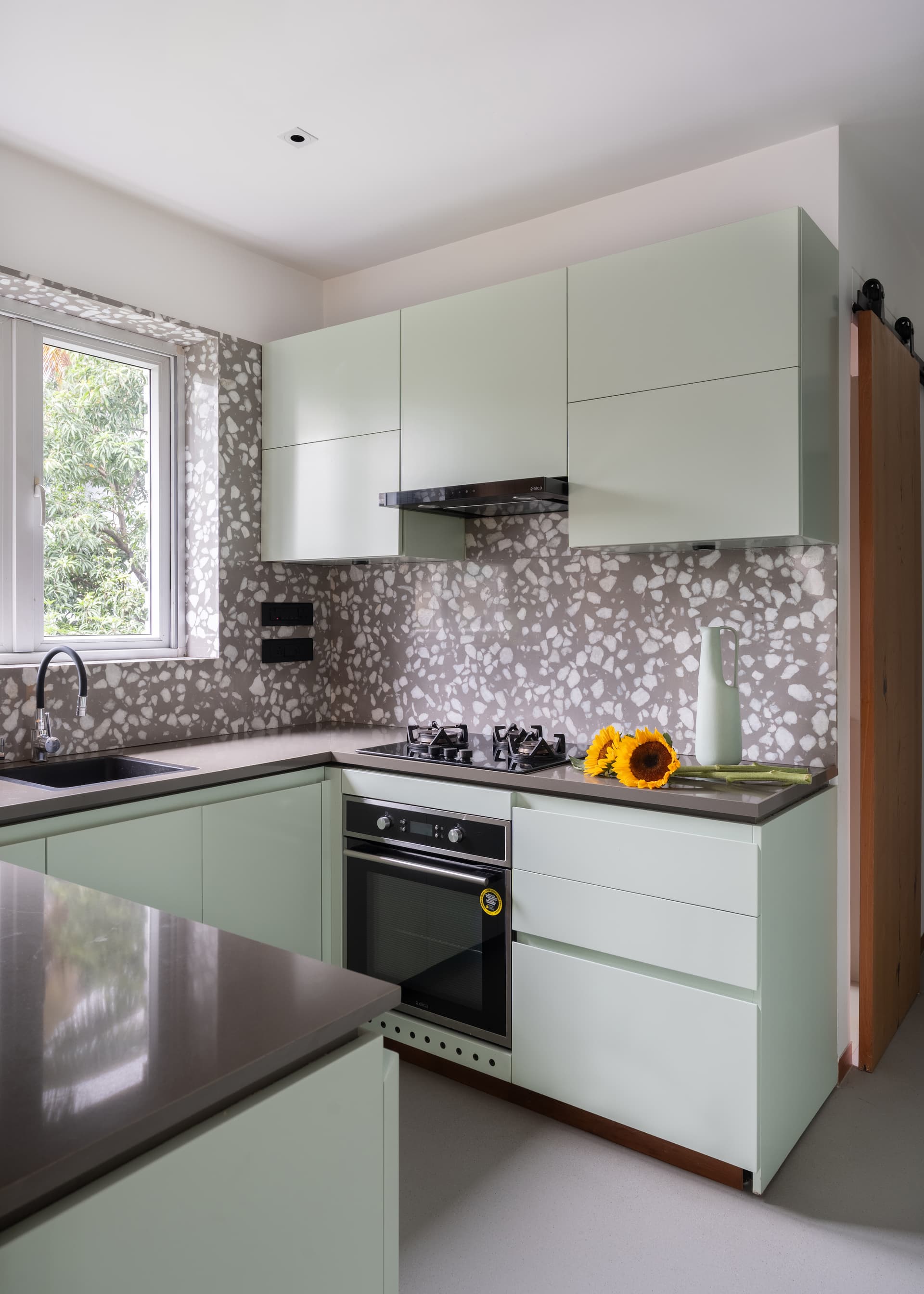 While the aesthetic foundation is distinctly Scandinavian, BharatKunj avoids the trap of sterility through a carefully orchestrated play of colour and form. Soft pastel tones peek through the minimalism, mint-green kitchen cabinetry adds freshness, the Ligne Roset chairs bring in blush and terracotta notes, and delicate accents across textiles and accessories add character without crowding the space.