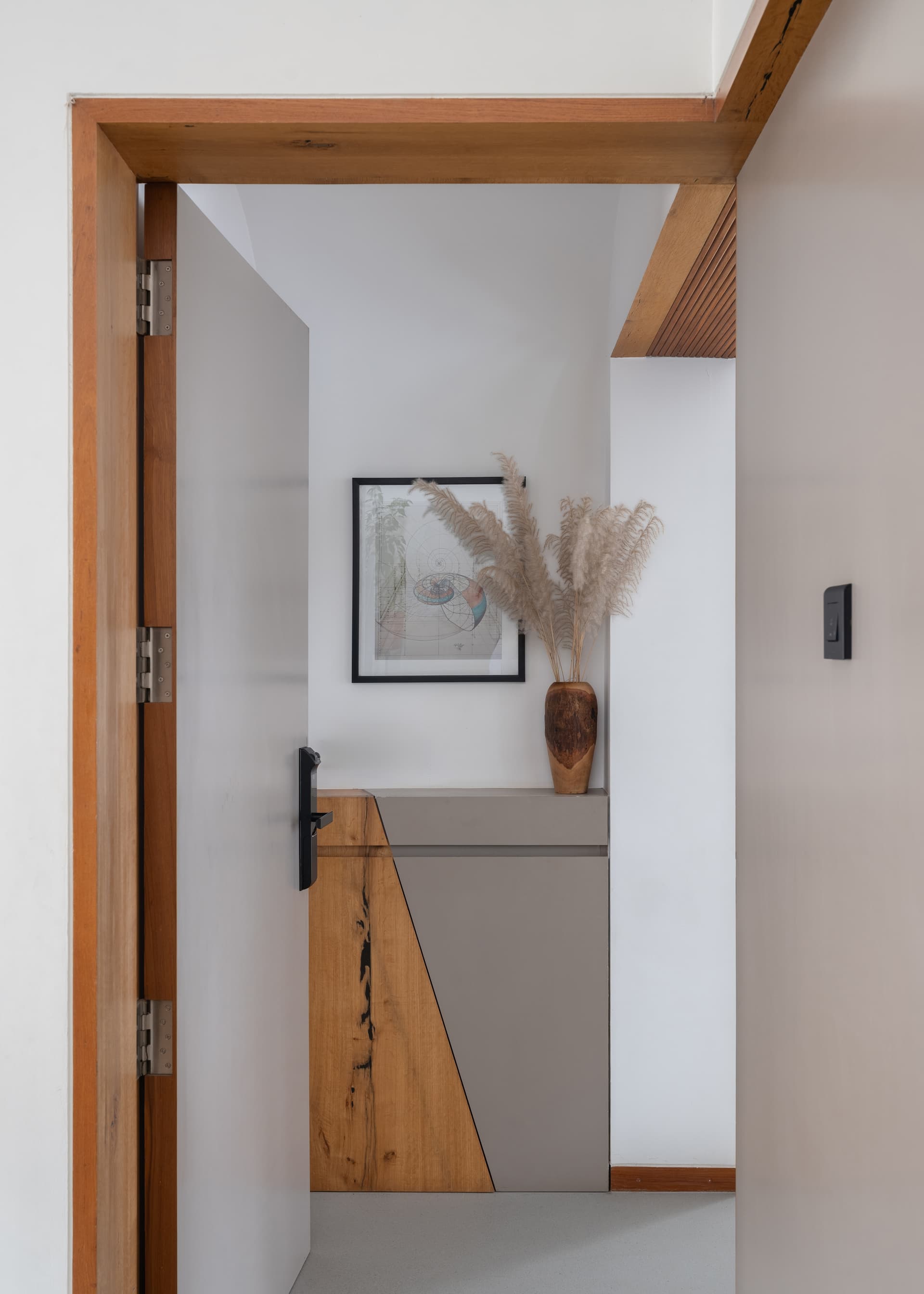 Originally a 2.5 BHK, the apartment has been entirely reimagined to embody the couple’s ethos – less, but better. Vora’s vision transformed the layout into a one-bedroom retreat, where each square foot serves a purpose yet never feels forced. “The idea was to make the space breathe,” she explains. “We wanted every corner to hold meaning, without overwhelming the eye.”