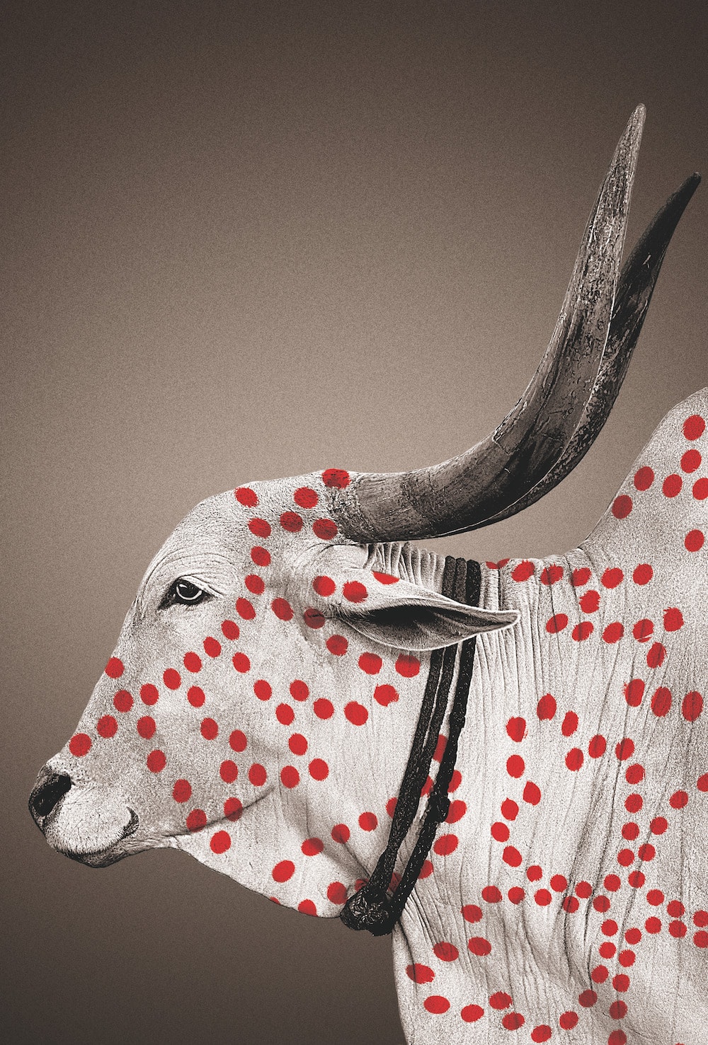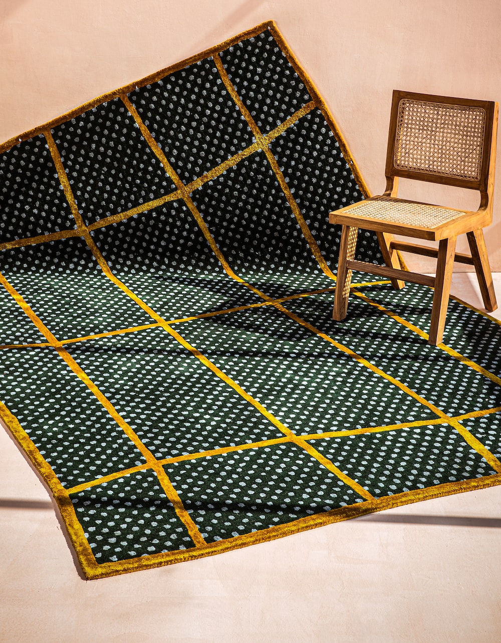 Mystical and playful, this collection encompasses a mélange of sofas, coffee tables, wall art, wall mirrors, tableware, lighting, rugs and décor that emanate a blitheful vibe. For instance, the impelling Nandi Gunjan poster, where the silhouette of an indigenous Nandi bull poses with quirky dots, revels in its eccentricity. Another imaginative piece of art is artist Madan Meena’s Life circle, an organic repetitive pattern prompted by the rural art forms of tribal Meena women of Rajasthan.