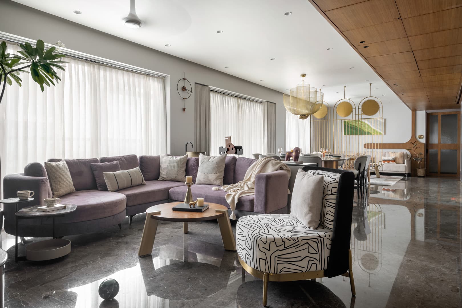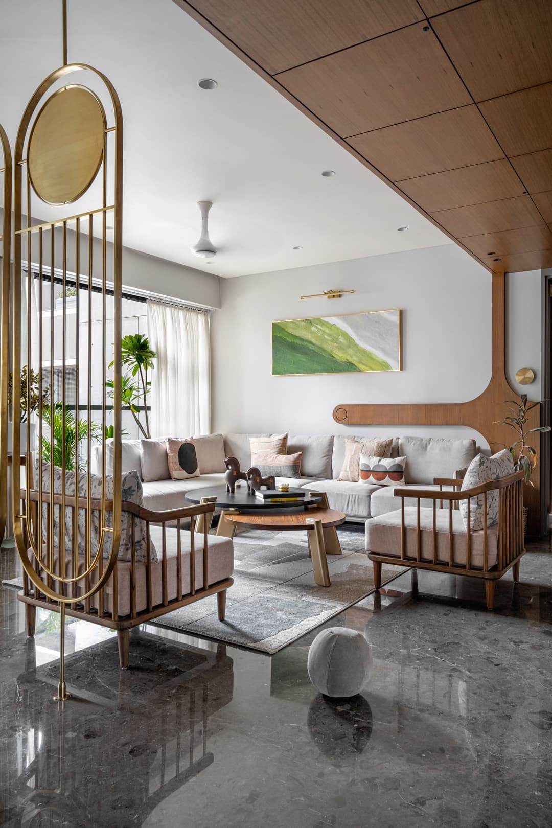 The primary objective was to design a home that exudes the essence of premium living while catering to the varied style preferences and lifestyles of each family member. The challenge was to combine their unique personalities into a cohesive and harmonious space. To achieve this, the design team employed a soothing neutral colour scheme, the warm tones of teak wood, and the rich gleam of brass accents. These elements not only unify the space but also provide a backdrop that allows for the individual tastes of each family member to shine through. Thoughtful personal touches were integrated throughout the home, ensuring that each corner of the apartment tells a story and adds to the overall narrative of elegance and familial harmony.
